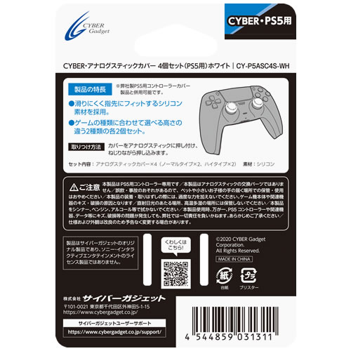 CYBER・アナログスティックカバー 4個セット(PS5用) 〈ホワイト〉