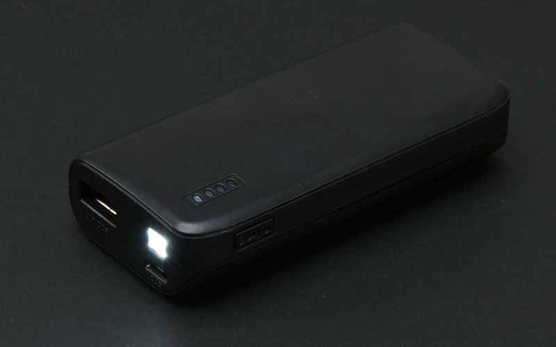 バッテリーの残量は、4段階のLEDランプで確認が可能。さらに、暗い場所で充電する際や、いざというときに便利なLEDライト機能も搭載しています。