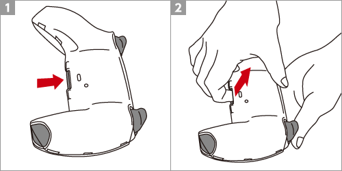 コントローラーを裏返した状態で裏面カバー下部の矢印の位置に人差し指を引っ掛けます。
