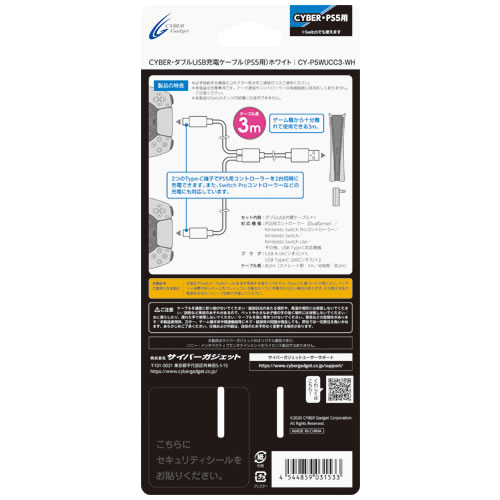 CYBER・ダブルUSB充電ケーブル(PS5用)