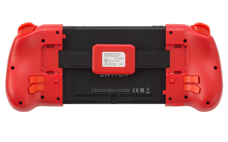 背面拡張ボタン搭載 CYBER・ダブルスタイルコントローラー(SWITCH用)〈レッド〉[収縮時]