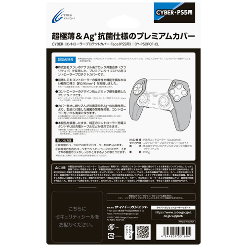 株式会社クラレのアクリル系ブロック共重合体〈クラリティ®〉を採用した、プレミアムタイプのPS5用コントローラープロテクトカバー。装着してもコントローラーの操作性や機能を損なうことがないように徹底的にこだわり、汚れやすいグリップ部や操作ボタンの周囲はしっかりと保護しつつ、アナログスティックとタッチパッド周りを大胆に開口したデザインです。