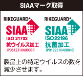 SIAAマークはISO22196法およびISO21702法により評価された結果に基づき、抗菌製品技術協議会ガイドラインで品質管理・情報公開された製品に表示されています。