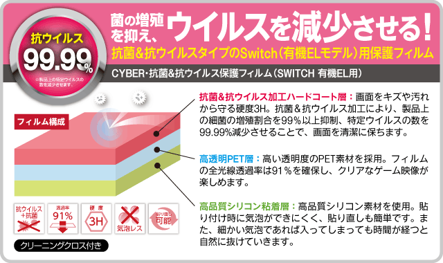 CYBER・抗菌&抗ウイルス保護フィルム(SWITCH 有機EL用)