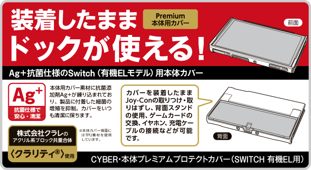 装着したままドックが使える! CYBER・本体プレミアムプロテクトカバー(SWITCH 有機EL用)〈クリア〉