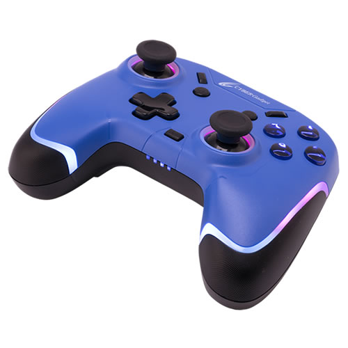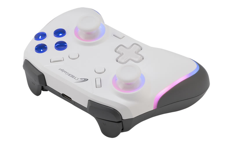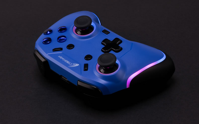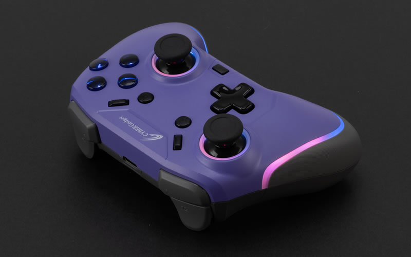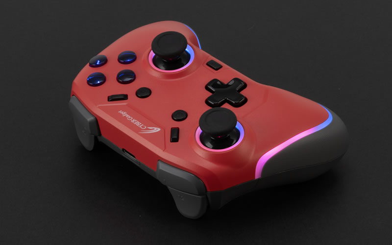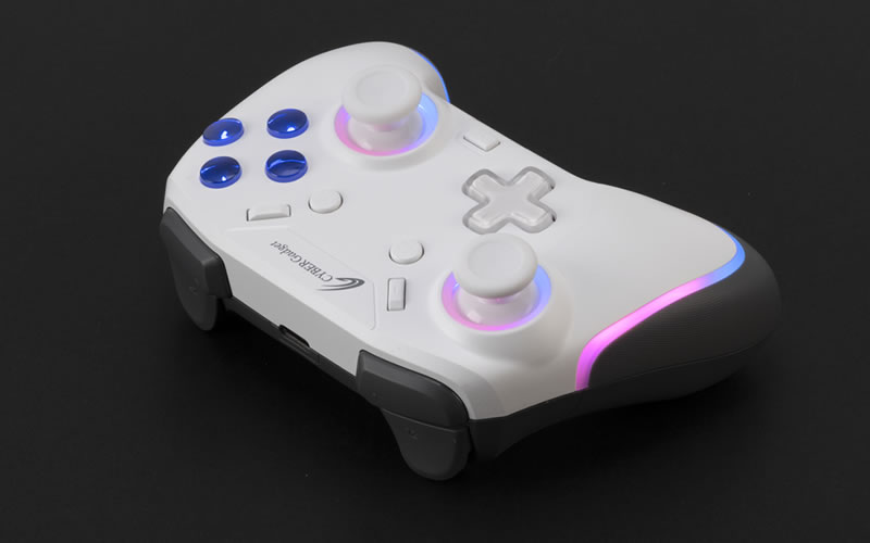 ゲーミングデバイスでおなじみのRGB LED機能を搭載。アナログスティックの周囲とグリップ部にLEDを内蔵しており、7色に光らせることができます。LEDのON/OFFや、カラー、輝度は調整が可能で、LEDのカラーが徐々に変わっていく「RGB LED ファンタジーモード」や、お気に入りのカラー1色に固定した状態で明るさだけが呼吸をするように変わる「ブレスモード」など、自分好みに設定できます。