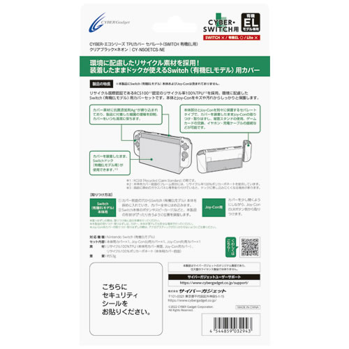 環境に配慮したリサイクル素材と紙パッケージを使用したSwitch(有機ELモデル)用保護カバーセパレートタイプ