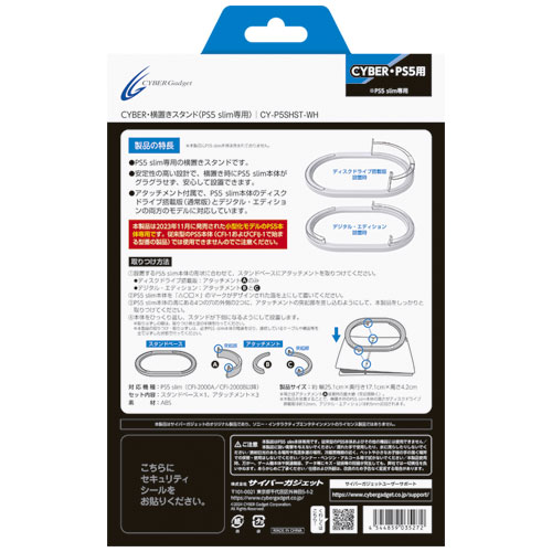 - ※本製品は2023年11月に発売された小型化モデルのPS5 slim本体(CFI-2000A01/CFI-2000B01)専用です。従来型のPS5本体(CFI-1およびCFIJ-1で始まる型番の製品)、PS5 Pro本体では使用できませんのでご注意ください。
