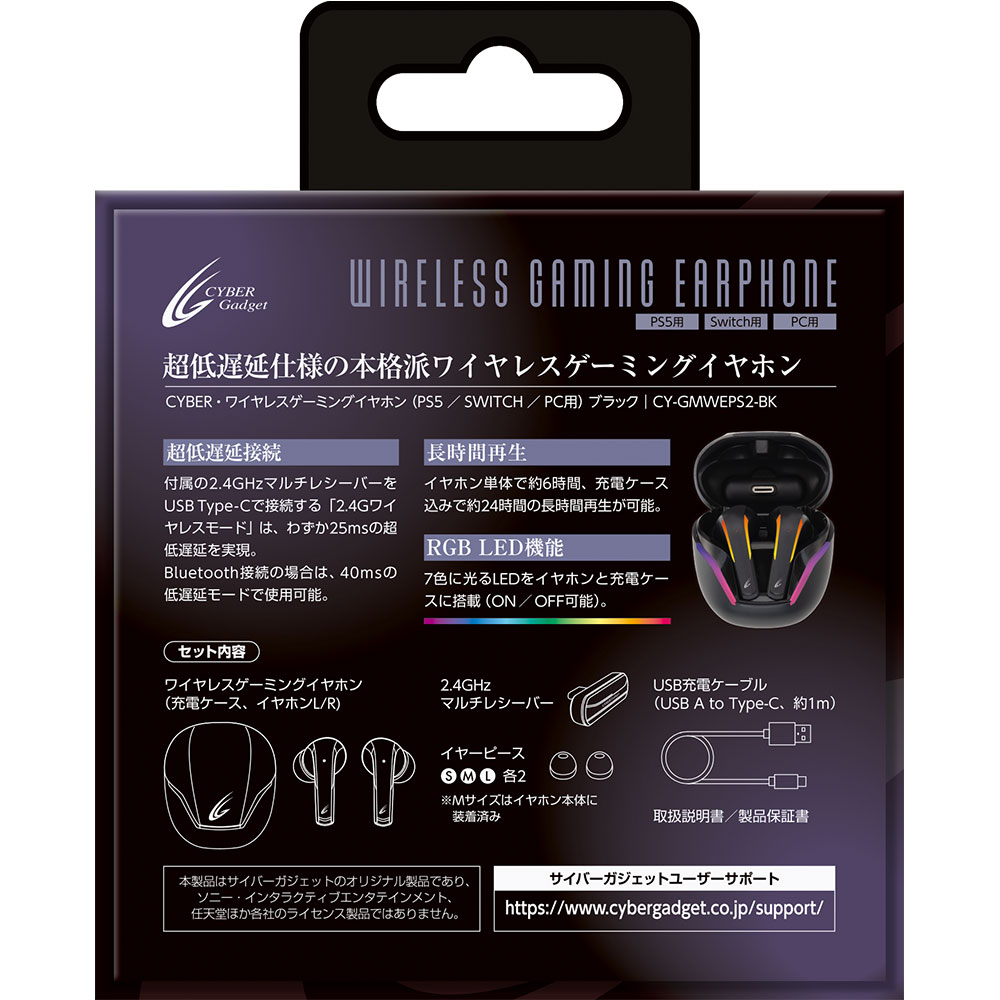 CYBER・ワイヤレスゲーミングイヤホン(PS5/SWITCH/PC用)ブラック