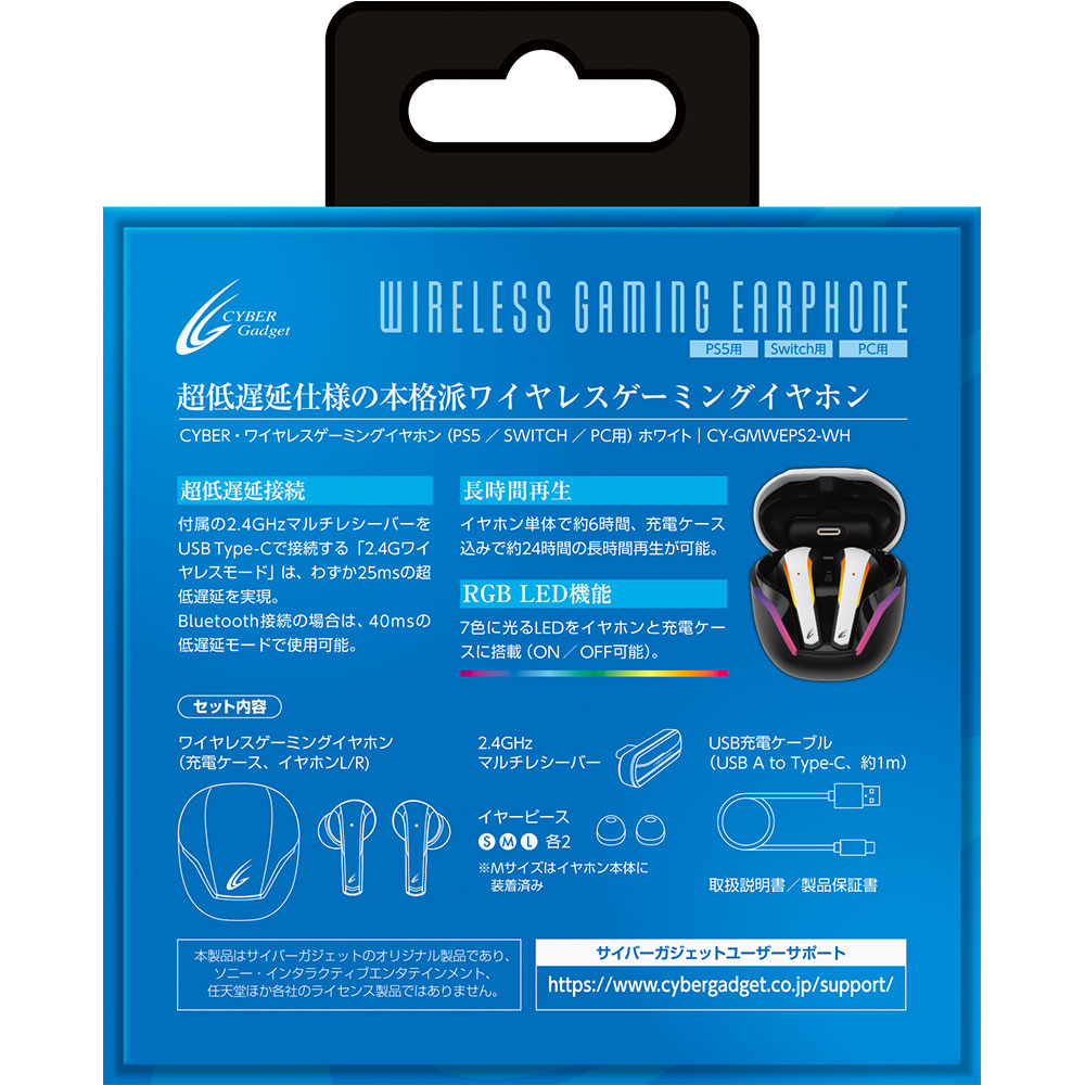 CYBER・ワイヤレスゲーミングイヤホン(PS5/SWITCH/PC用)ホワイト