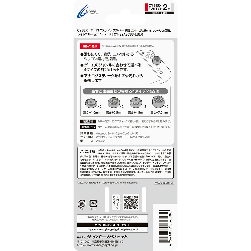 CYBER・アナログスティックカバー 8個セット(Switch2 Joy-Con2用)ライトブルー&ライトレッド