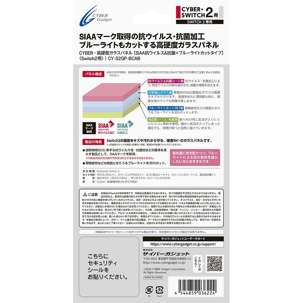 CYBER・高硬度ガラスパネル[SIAA抗ウイルス&抗菌+ブルーライトカットタイプ](Switch2用)