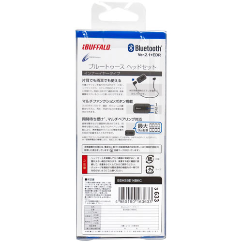 - BUFFALO Bluetooth®ヘッドセット BSHSBE14BKC本体×1