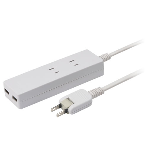 2つのコンセントと2つのUSB充電ポートを搭載したマルチ電源タップ