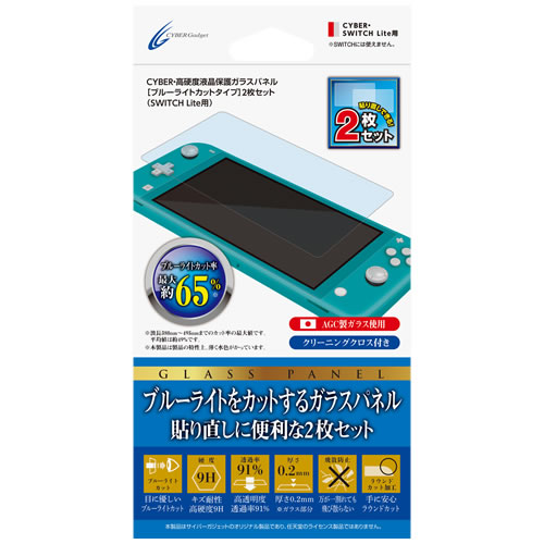 CYBER・高硬度液晶保護ガラスパネル[ブルーライトカットタイプ]2枚セット(SWITCH Lite用)販売終了