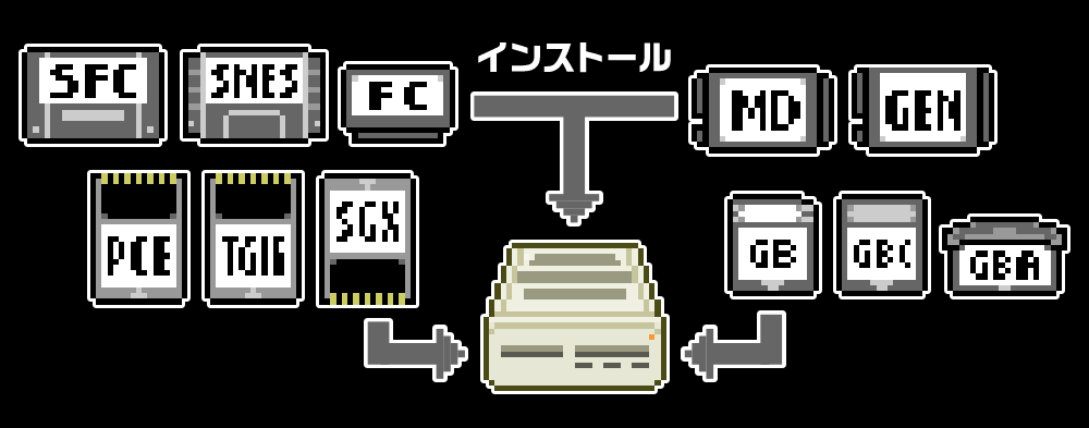 カートリッジのゲームをインストール可能。