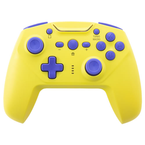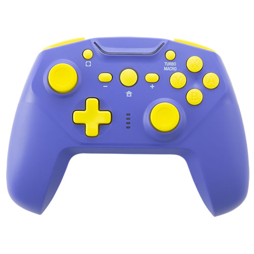 握りやすいグリップ形状で、⻑時間でも快適にゲームをプレイできるSwitch⽤コントローラーです。背⾯に4つのマクロ ボタンを搭載。複雑な操作をあらかじめ設定し、ボタンひとつで発動することができます。