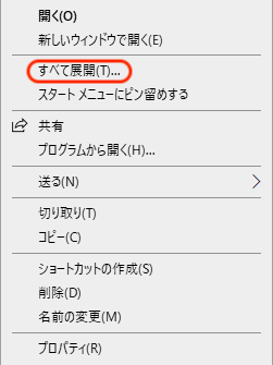 ■セキュリティ対策ソフトが一時停止されている状態で発生がみられる場合、ダウンロードされたファイルを右クリックして「すべて展開(T)」を選択し、展開解凍が完了したら、更新ツールアイコンを右クリックして「管理者として実行」を選択し、更新プログラムの実行を行ってください。 - ※「管理者として実行」時にも「Windowsによって保護されました」メッセージが表示された場合は、もう一度「詳細情報」を選んだ後に「実行」をしてください。