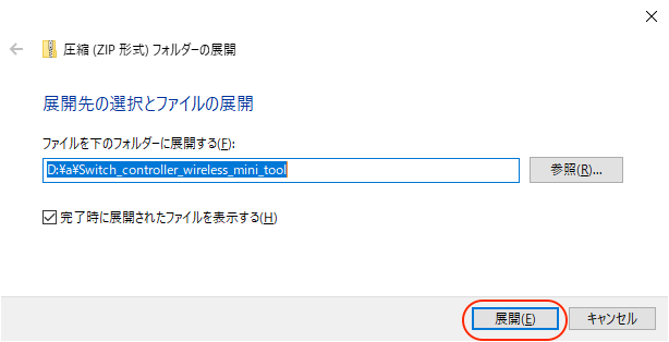 ダウンロードしたファイルを右クリックし「すべて展開」を選択してファイルを展開後「コントローラー更新ツール」を実行します。