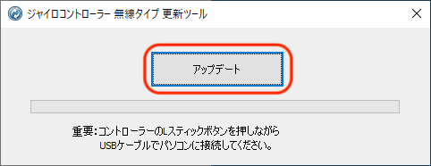 コントローラが正しく接続されると「アップデート」ボタンが押せるようになります。
